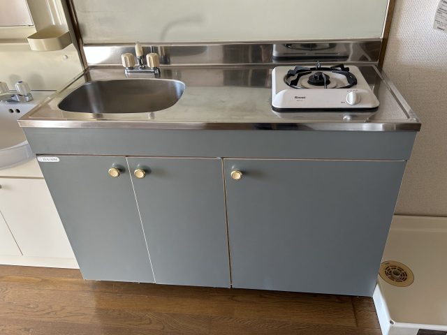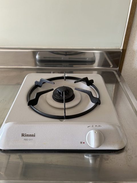 都市ガス1口コンロ、エアコン、温水洗浄便座、3ヶ所給湯、クローゼット、下駄箱、敷地内ゴミ置き場、駐輪場
